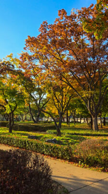Sebuah jalan setapak di sepanjang tembok barat Kuil Jongmyo.