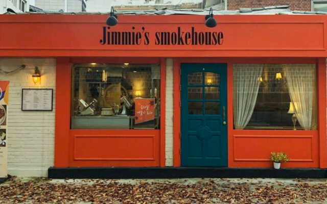 Para perajin dan kafe berkumpul di bawah dinding yang tenang